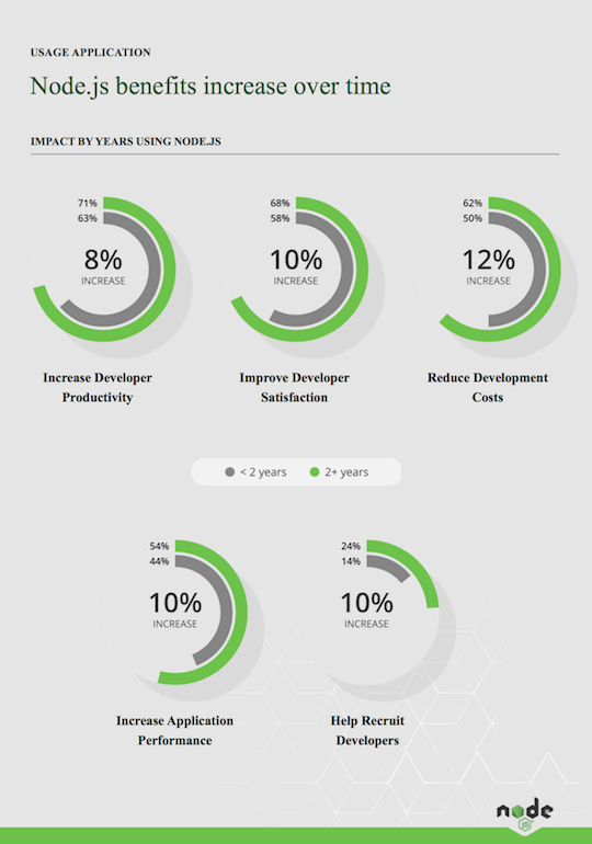 توسعه دهندگان و مدیرانی که بیش از 2 سال از Node.js استفاده کردند مزیت های اون رو بیشتر ستایش می کنند.