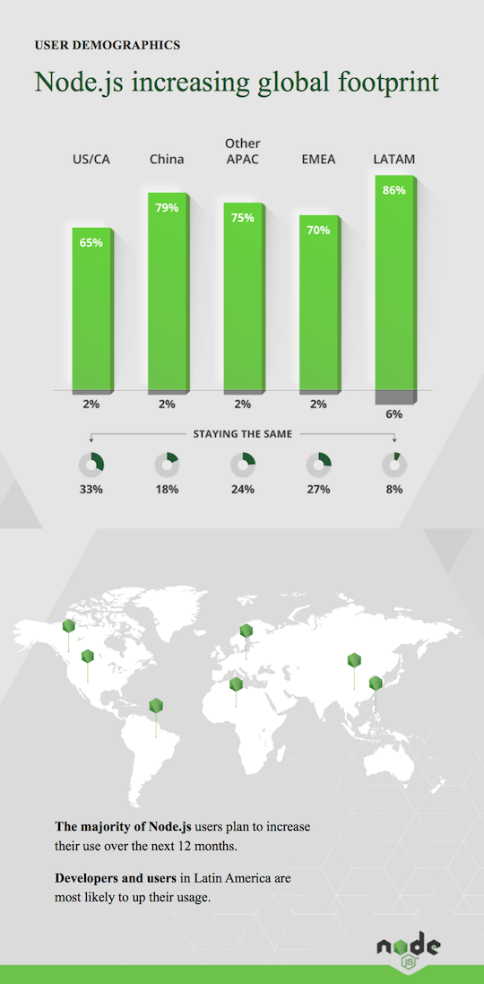این واقعا جالبه که با توجه به نظرسنجی کاربران توسعه دهنده Node.js در اروپا 41 درصد رشد داشتند.