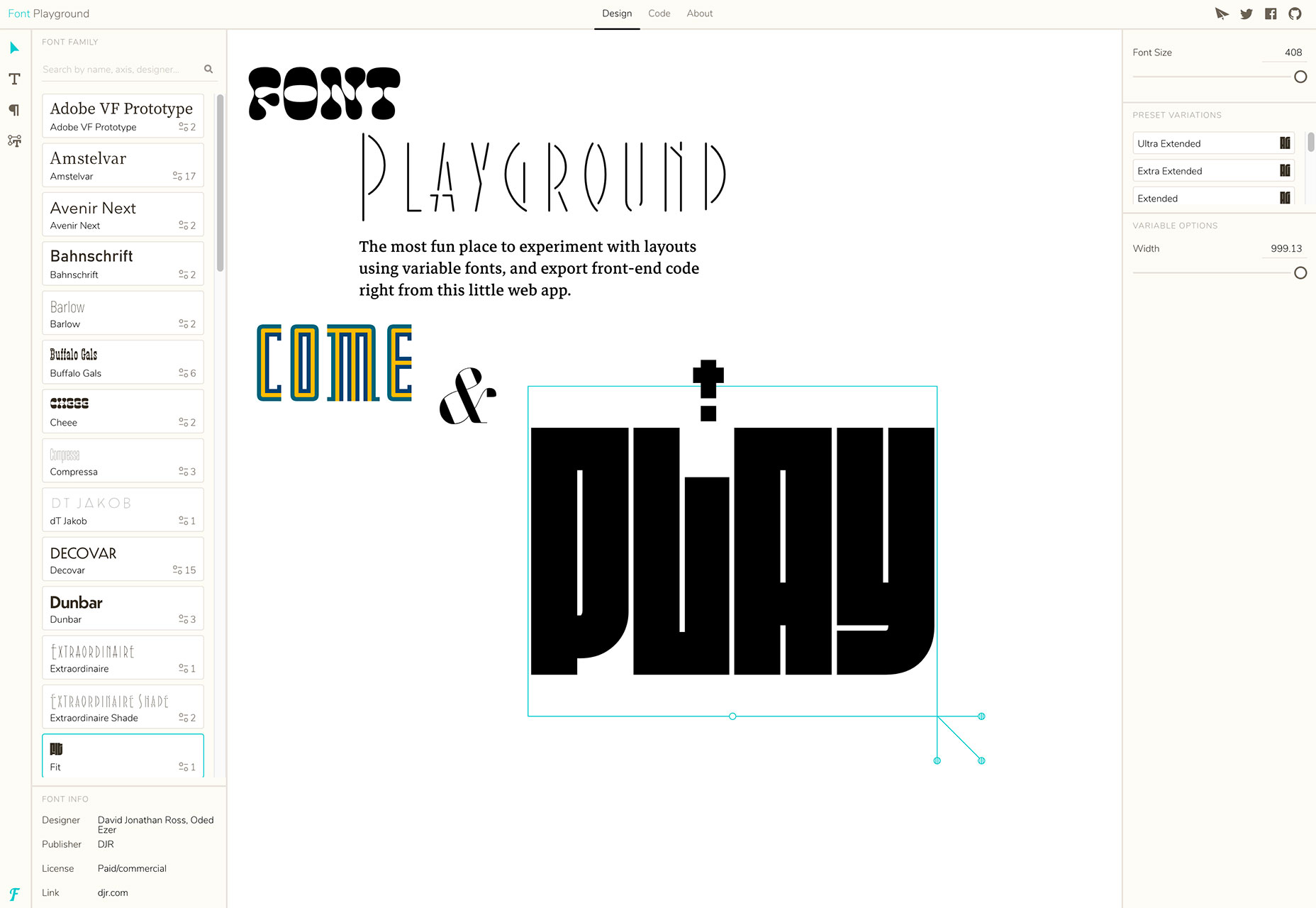 Font Playground ابزاری است که به شما در آزمایش فونتهای متغیر و حتی خروجی گرفتن کد front-end آنها کمک میکند. فونتهای متغیر، فایلهای فونت تکیای هستند که مانند چندین فونت رفتار میکنند و با محبوبیتی که هر روز به آنها اضافه میشود، احتمالا باید آنها را آزمایش کنید.