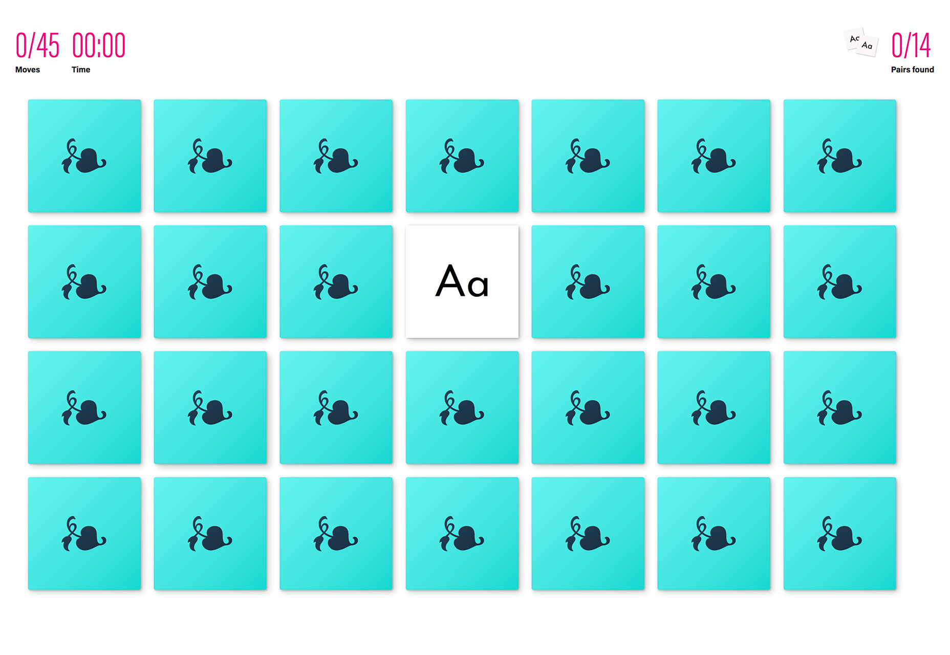 بازی Font Memory به شما کمک میکند تا چشمان خود را به دیدن جزئیات در تایپوگرافی عادت داده، و typefaceهای مختلف را بهتر تشخیص دهید. این بازی از آنچه که فکر میکنید سختتر است!